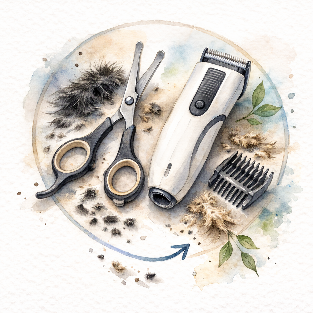 - Nutze die kleinen Hilfsmittel wie Pfotenschere, Trimmer, Balsam, Mikrofasertuch und Leckmatte, sie retten deinen Alltag.