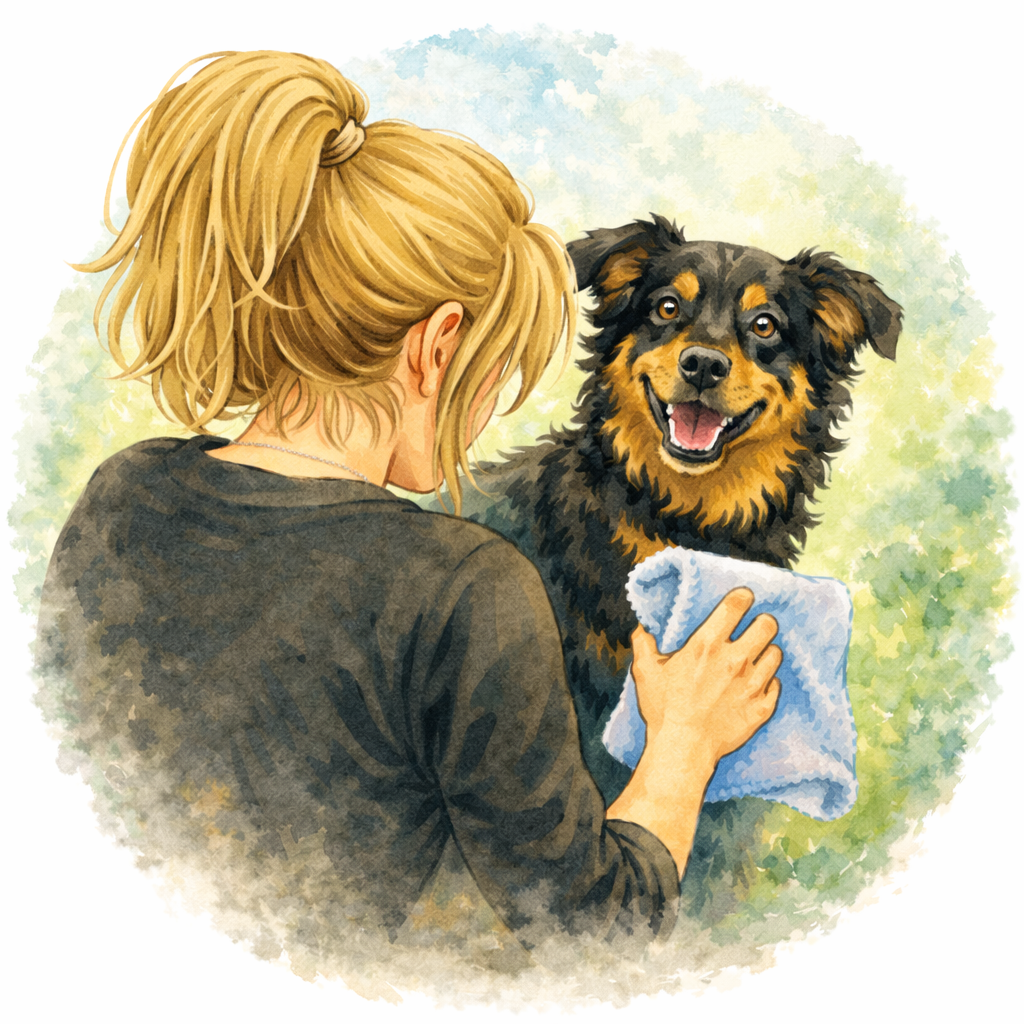 Der wichtigste Teil dabei ist tatsächlich etwas ganz Einfaches: Aufmerksamkeit. Maruja wird morgens und abends gründlich abgesucht. Nach jedem Spaziergang gehe ich zusätzlich mit einem Mikrofasertuch über ihr Fell. Damit lassen sich Zecken, die noch unterwegs sind, häufig schon entfernen, bevor sie sich überhaupt festbeißen.
